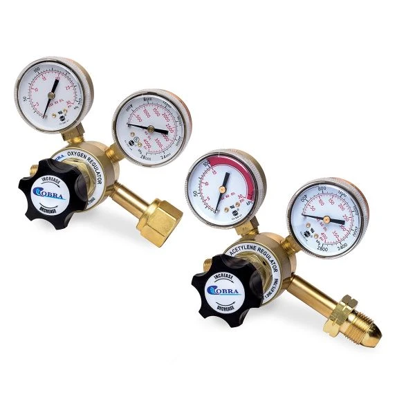 The Cobra Low Pressure Oxygen & Acetylene Regulator set enables you to use your Cobra DHC 2000 to its fullest extent of its capabilities. These regulators enable you to fine tune your gas flow and save money by getting just the right amount of gas for the job.